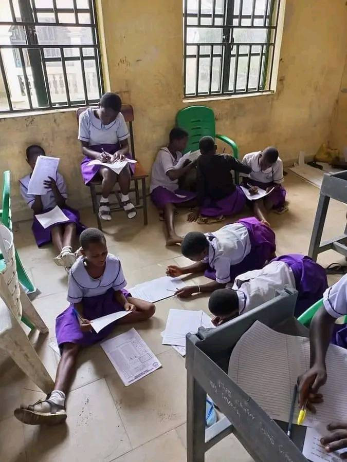 Viral Photo Shows Secondary School Students Sitting On Bare Floor To